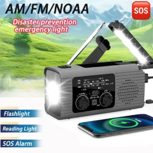 🔹 כולל רדיו AM/FM לקבלת עדכונים, פנס LED חזק לתאורת חירום, וכפתור מצוקה להפעלת אזעקת SOS רועשת.