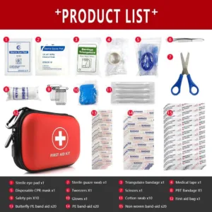 ערכת עזרה ראשונה ניידת הכוללת 91 פריטים, אידיאלית לשימוש ביתי