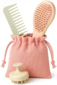 ערכה הכוללת 3 חלקים: מברשת, מסרק ומעסה קרקפת, עם תיק בד