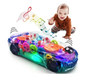 מכונית שקופה עם אורות וגלגלי שיניים זוהרים – החוויה הכי צבעונית שיש! 🚗✨
