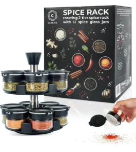 מתקן תבלינים מסתובב מבית Spice Spinner – כולל צנצנות זכוכית ותגיות מוכנות