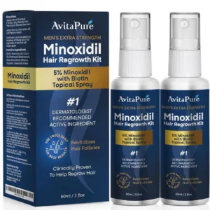 ספריי מינוקסידיל 5% AvitaPure טיפול עוצמתי נגד התקרחות לגברים (סט כפול)