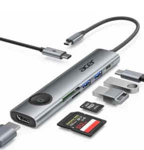 מפצל חכם 7 ב-1 מבית Acer – תואם USB-C עם HDMI, PD, כרטיסי זיכרון ועוד
