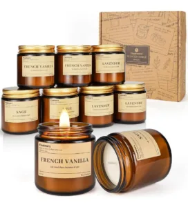 🔸 9 נרות במגוון ריחות – וניל, לבנדר, מרווה ועוד