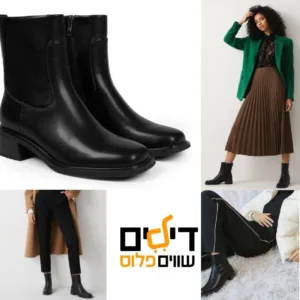 מגפוני עקב נמוך לנשים עם רוכסן צד
