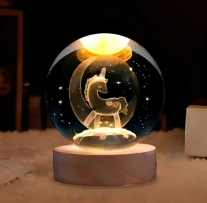 🔸 כדור קריסטל 8 ס”מ עם חריטת חדקרן: אפקט שמיים זרועים כוכבים בתוך כדור
