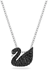 🔸 שרשרת עם תליון ברבור משובץ קריסטלים שחורים על ציפוי רודיום.