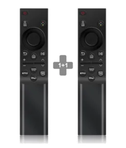 סט של שני שלטים אוניברסליים שמתאימים לרוב טלוויזיות Samsung, כולל דגמי Frame, Crystal, QLED, OLED, מסכי קעורה ואפילו 4K/8K UHD.