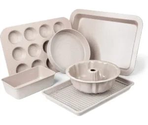 כולל תבניות לעוגה, עוגיות, מאפינס, לחם, צלייה ורשת קירור. עמיד בחום, קל לניקוי וחוסך מקום באחסון.