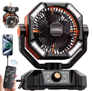 מאוורר קמפינג coldSky נייד עם סוללת 20000mAh ו-4 נורות LED