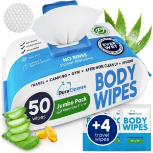 מארז 54 מגבוני רחצה גדולים XL למבוגרים ללא שטיפה מבית Duracleanse