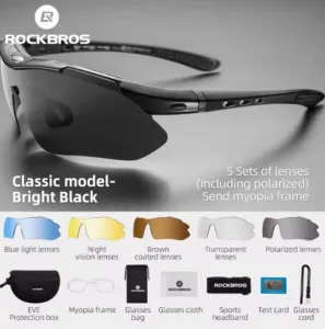 סט משקפי רכיבה ROCKBROS עם 5 עדשות מתחלפות