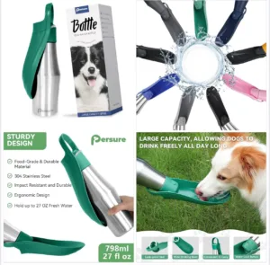 בקבוק נירוסטה נייד בנפח 27oz (כ־800 מ”ל) פותר את הבעיה ומאפשר לתת לכלב לשתות בנוחות בכל טיול.