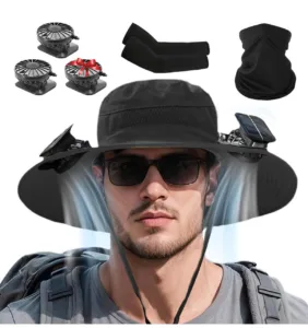 כובע שמש לגברים עם מאווררי סולאר מובנים + שרוולי ידיים ומסיכת צוואר