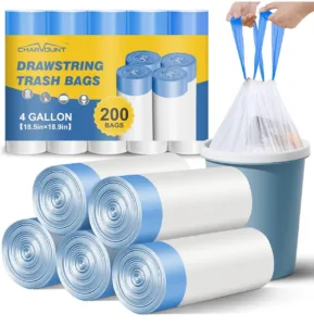 שקיות אשפה חזקות Charmount בנפח 15 ליטר – 200 יחידות עם שרוך סגירה