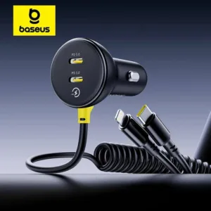 מטען רכב Baseus 60W עם כבלים נשלפים