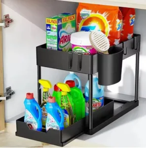 🔹 מושלמת לארגון חומרי ניקוי במטבח או בחדר הרחצה.