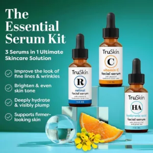 סט הסרומים של TruSkin הוא הפתרון המושלם למראה צעיר, חלק וזוהר – שלושה סרומים עוצמתיים בבקבוקונים מפנקים!