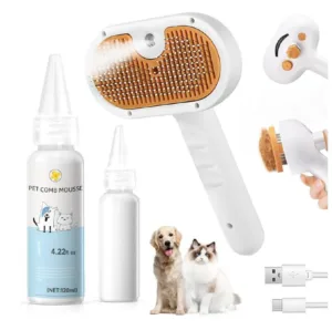🔸 3 ב-1 – סירוק, ניקוי והברקה – משלבת קיטור עדין שמרכך את הפרווה, מסיר לכלוך ומפחית חשמל סטטי