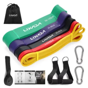 🔹 סט 3 גומיות התנגדות ברמות קושי שונות (אדום, שחור, סגול).