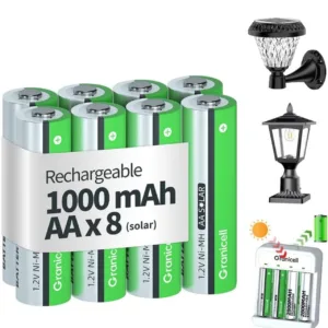 סט של 8 סוללות AA נטענות של Granicell עם קיבולת 1000mAh