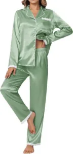 סט פיג’מת סאטן ארוכה עם עיטורי תחרה מבית Ekouaer