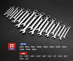 🔸 22 מפתחות בגדלים נפוצים – מ״מ ואינצ׳: 6–18 מ״מ ו־¼״–¾״