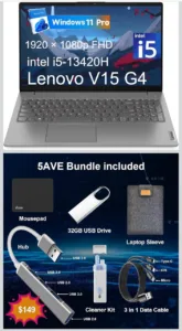 מחשב נייד Lenovo V15 G4 עם מעבד Intel i5 דור 13, זיכרון 16GB ואחסון 512GB SSD עם מתנה של חבילת אביזרים נלווים🎁