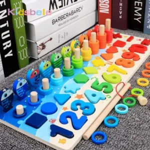 🔹 5 משחקים בלוח אחד: מספרים, צורות, דגים מגנטיים, ספירה וטבעות השחלה.