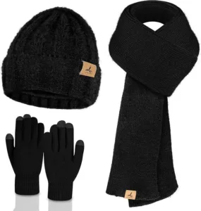 🔸 סט מלא הכולל כובע סרוג, צעיף ארוך וזוג כפפות.
