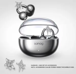 אוזניות תכשיט אלחוטיות לנשים S6S Nova של Sanag עם קליפס לאוזניים