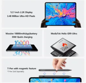 טאבלט עוצמתי עם מסך ענק ואיכותי בגודל 12.7 אינץ’, תצוגת UHD 2.2K מרהיבה, ובפנים מעבד Helio G99 מהיר במיוחד. מושלם לעבודה, לימודים, סרטים ויצירה.
