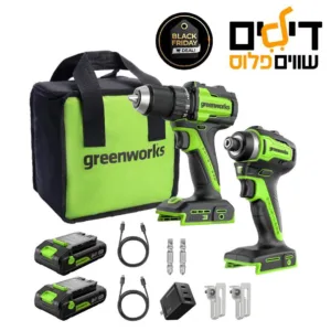 ערכת קומבו מברגה/מקדחה + אימפקט Greenworks 24V Brushless