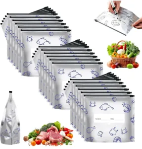 שקיות אחסון רב־פעמיות מאלומיניום – 30 יחידות, עם סגירת רוכסן ואפשרות עמידה.