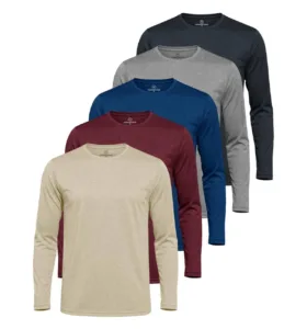 חולצות ספורט במארז של 5 מבית Real Essentials – בד מאוורר, מתייבש מהר ומגן מהשמש. מגיע גם במידות Big & Tall.