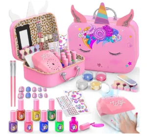 ערכת לקים לילדות עם מייבש לק, צבעים מתקלפים ובטיחותיים, וכל מה שצריך כדי ליצור עיצובים מהממים בקלות.