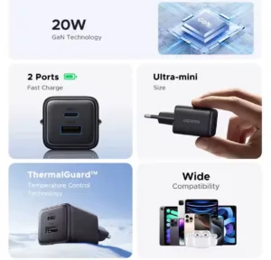 ⚡ מטען UGREEN 20W בטכנולוגיית GaN עם PD3.0 ו QC3.0 בגודל מיני