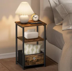 שולחן צד קומפקטי עם 3 קומות מבית KIMBORA – פתרון חכם לאחסון, סדר ונוחות גם בחללים קטנים.