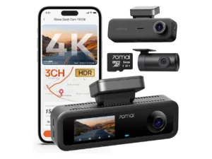 מצלמת דרך 70mai 4K T800E הכוללת 3 ערוצים (קדמית, אחורית ופנימית)