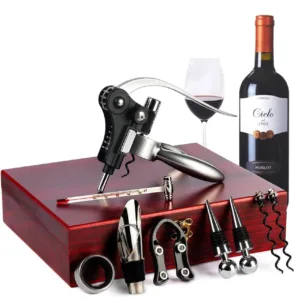 🔸 סט מלא לפתיחת יין הכולל חולץ פקקים, חותך רדיד, מוזג, טבעת נגד טפטוף, פקקי ואקום, מדחום ועוד