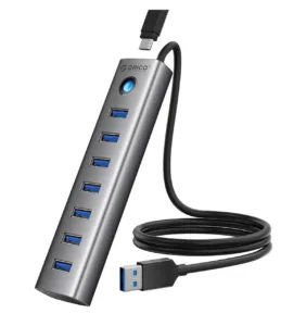 מפצל USB 3.0 של ORICO עם 7 חיבורים בגוף אלומיניום איכותי – מאפשר לחבר דיסק-און-קי, כונן חיצוני, עכבר, מקלדת ועוד, במהירות גבוהה וביציבות מלאה