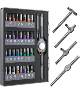 סט מברג ראצ׳ט מגנטי 32 ב־1 עם ידית T לנוחות ומומנט חזק, כולל ראשים מגנטיים להחזקה יציבה של הברגים