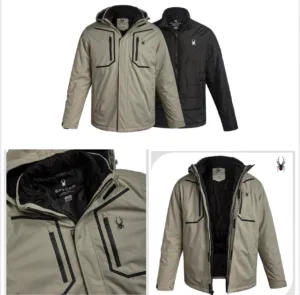 מעיל סקי לגברים מבית Spyder עם מערכת 3-ב-1 – שכבה חיצונית אטומה למים + שכבה פנימית מחממת, שניתן ללבוש יחד או בנפרד לפי מזג האוויר.