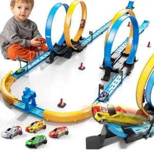 מעל 35 חלקים לבנייה חופשית של מסלולים שונים, 4 מכוניות מתכת מהירות עם לופים מלאי אקשן, בלי סוללות, מנגנון מכני פשוט ועמיד, מתאים לגילאי 3 עד 12