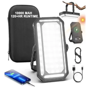 פנס קמפינג נטען עם סוללה חזקה במיוחד של 10000mAh ועד 120 שעות עבודה, מתאים לשטח, לבית, להפסקות חשמל ולמצבי חירום.