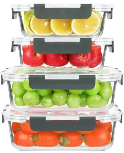 סט קופסאות זכוכית לאחסון מזון עם מכסים אטומים KOMUEE