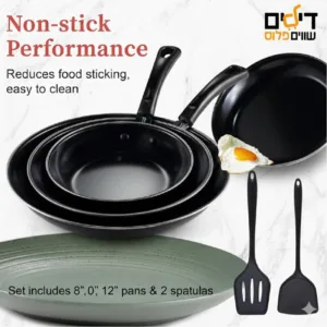 עשויות פלדת פחמן עם ציפוי נון סטיק איכותי ללא PTFE, PFOA, PFAS ומתכות כבדות