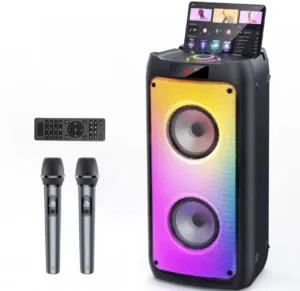 רמקול קריוקי אלחוטי T10-T עם 2 מיקרופונים, תאורת LED וסאב־וופרים עוצמתיים
