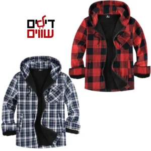 ג’קט פלנל SCODI לגברים עם בטנת פרווה וקפוצ’ון