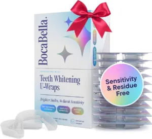 פלטות ההלבנה של Boca Bella יתנו לכם תוצאה מקצועית עם 10 טיפולים בעיצוב U שעוטף את השן מכל הכיוונים, עם 15% מי חמצן אבל עם רכיבים מרגיעים לשמירה על החניכיים והאמייל.